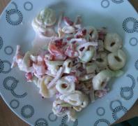 Składniki: -opakowanie tortellini z ulubionym nadzieniem (w biedrze są tanie) -200g szynki konserwowej -pomidor -ogórek -odrobina cebuli (najlepiej czerwonej) -pół papryki -trzy łyżki majonezu -dwie łyżki jogurtu naturalnego -sól, pieprz Przygotowanie: Tortellini gotujemy według przepisu na opakowaniu. Pozostałe składniki kroimy w kostkę, dodajemy majonez, jogurt i dorzucamy ostudzone tortellini. Doprawiamy do smaku solą i pieprzem i mamy gotową bardzo łatwą i szybką sałatkę.
