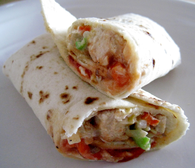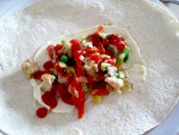 Szybciutki i pyszniutki obiadek... Super zamiast kanapek do pracy... Potrzeba: - tortille/wrapy - piers z kurczaka - mieszanke mrozonych warzyw na patelnie (stir fry) typu groszek, kielki, kukurydza, marchewka, fasolka, cebula... Smazymy kurczaka przyprawionego na patelni. Jak gotowy to dodajemy warzywka i smazymy az beda gotowe. Wrapa w tym czasie wrzucamy na kilka minut do piekarnika lub kilkanascie sekund do mikrofali. Po czym zawijamy wszystko we wrapie wraz z keczupem i majonezem - P Y C H A ! ! ! I dietetycznie... :grin:)) Kazda wersja jest dobra do wrapa... Miesko jakies - moze byc kotlet etc. Niekoniecznie musza byc warzywna mrozone, ja czasem daje do srodka smazona cebule i kukurydze. Rowniez pyszne z salatka z tynczyka (patrz przekaski). Mila odmiana od kanapek do pracy. Zawinac tylko w folie aluminiowa i gotowe. Polecam.