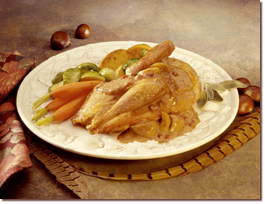 Marron to kasztany-c'est ca :wink: . Oczywiscie zamiast bażanta można użyć perliczki. Polecam stronę www.marron.pl, gdzie znajduje się jeszcze więcej pomysłów na wykorzystanie kasztanów. Właśnie na tej witrynie można również kasztany kupić i to pod różną postacią (szczególnie polecam krem kasztanowy...mniaaam). Kasztany są bardzo zdrowe. Polecane dla osób z alergią na gluten, przy dolegliwościach żołądkowych itd. (dużo tutaj wymieniania :razz: ). Więcej informacji również na stronce. Zapraszam i nie pozostaje mi nic innego jak życzyć SMACZNEGO!!