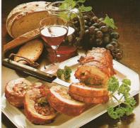 Górną częsc nakłuć,posypać okruszkami migdałów i polać roztopionym masłem.