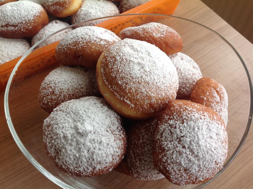 Stary dobry przepis , z którego od mojego dzieciństwa, mama zawsze robiła pączki 1 kg mąki 8 żółtek 1 jajko 1/2 l mleka 2 cukry waniliowe 125 g masła 1/2 szkl. Cukru Szczypta soli 1 łyżka octu lub 1 kieliszek spirytusu 10 dag drożdży Olej do smażenia Marmolada do nadzienia Mleko podgrzać. Masło stopić. Rozrobić drożdże: rozkruszyć do wysokiego naczynia drożdże, wsypać łyżkę mąki i łyżkę cukru, dolać tyle ciepłego mleka by rozczyn miał konsystencję śmietany, dobrze rozmieszać i odstawić w ciepłe miejsce do podrośnięcia. Żółtka i jajko ubić z cukrem i cukrem waniliowym na gęsty krem. Do dużej miski wsypać mąkę, szczyptę soli, dodać krem jajeczny, podrośnięte drożdże, ciepłe mleko, ocet lub spirytus, wymieszać i wyrabiać ciasto, po kilku minutach wlać ciepłe masło i wyrabiać dalej aż ciasto zacznie odchodzić od rąk. Miskę przykryć ściereczką i odstawić do wyrośnięcia w ciepłe miejsce. Kiedy ciasto podwoi swoją objętość nabierać porcję ciasta, moczoną w wodzie łyżką, nakładać marmoladę, zlepić brzegi i uformować pączki. Kłaść na podsypany mąką blat. Podrośnięte pączki smażyć w gorącym tłuszczu na średnim ogniu. Odsączyć z tłuszczu. Po ostygnięcia posypać cukrem pudrem lub polukrować. Smacznego! Pączki mozna nadziać rownież po upieczeniu. Z tego przepisu wyjdzie ok. 35 sztuk pysznych pączków :)