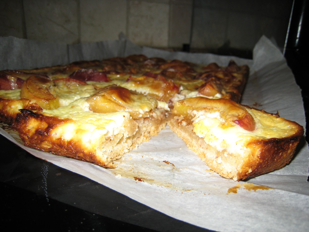 Co to przypomina w smaku..? Hmm... Trudno mi porownac, bo smak jest dosyc malo spotykany (moze Wiola w tym pomoze :grin: - ale moge opisac jak smakuje: spod jest dosyc kruchy (troche jakby mazurkowy/herbatnikowy), nie bardzo slodki, polewa kremowa tez nie jest slodka, ale za to sok z brzoskwin i posypany nimi cukier topia sie razem i stwarzaja slodki, aromatyczny, galaretkowy sos. Jest to wspanialy kontrast slodkosci z bardziej neutralnym smakiem, oraz struktury miekkich kremowych brzoskwin z kruchym spodem. Marzenie :grin: Dodam tez, ze brzoskwinie mozna obrac ze skorki przed uzyciem, podobno tez mozna zastapic swieze tymi z puszki (chociaz wtedy efektow nie gwarantuje, bo zawsze uzywalam swieze). Mam nadzieje, ze sie skusisz, Zuziorek, bo warto :grin: