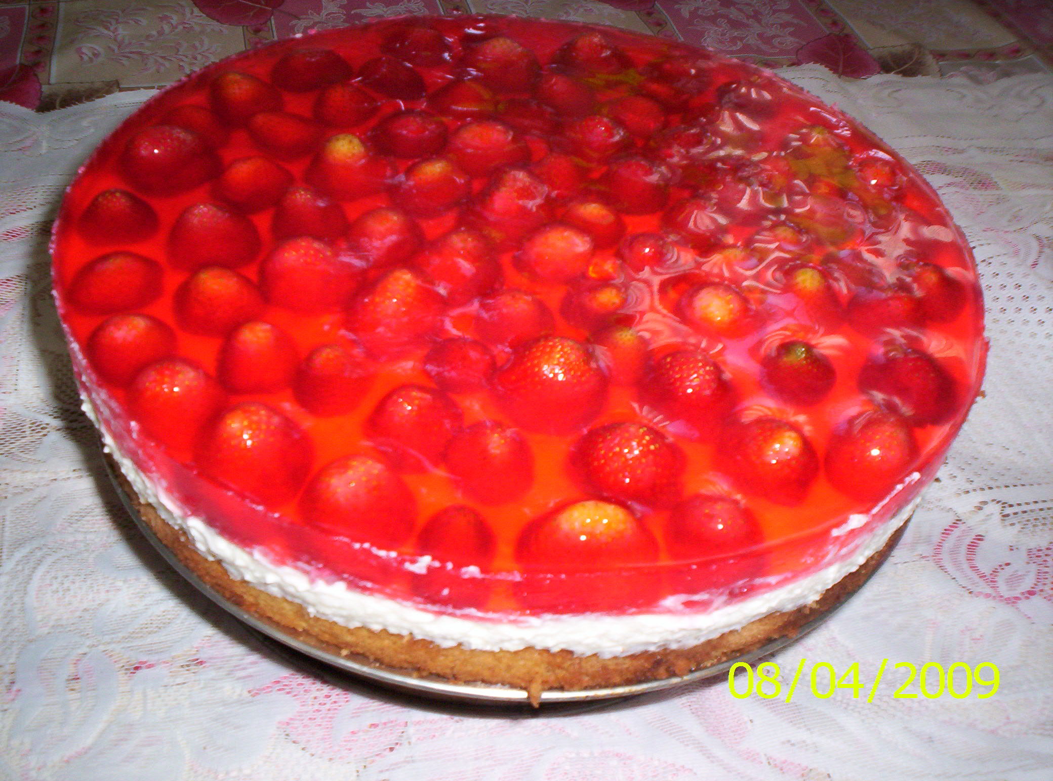 tortoletka: biszkopt: 3 jaja niecała szklanka mąki niecała szklanka cukru 1 łyżka mąki ziemniaczanej 1 łyżeczka proszku do pieczenia masa: 500 ml mleka 2 żółtka 15 dka masło 10 dka margaryny 22 dka cukru 6dka mąki 5dka mąki ziemniaczanej esencja waniliowa spirytus do samku na wierzch: owoce świerze lub mrożone , galaretka wykonanie: biszkopt: jajka z cukrem ubijać na puszysta mase, wymieszać z pozostałymi składnikami piec w 180st na złoty jasny kolor. masa: z maki, zółtek i z małą czescia cukru zrobić zawiesine dobrze rozmieszać na gotujące mleko z cukrem wlać i gotowac do zgestnienia ciągle mieszając. ochłodzić budyń.margaryne , masło z esenscja napowietrzyc i dodawać porcjami zimny budyń ciagle napowietrzając do gotowego kremu dodac spirytus dp smaku i wymieszać. na upieczony biszkopt rozmarować równomiernie mase ułóżyc owoce zalać teżejącą galaretka