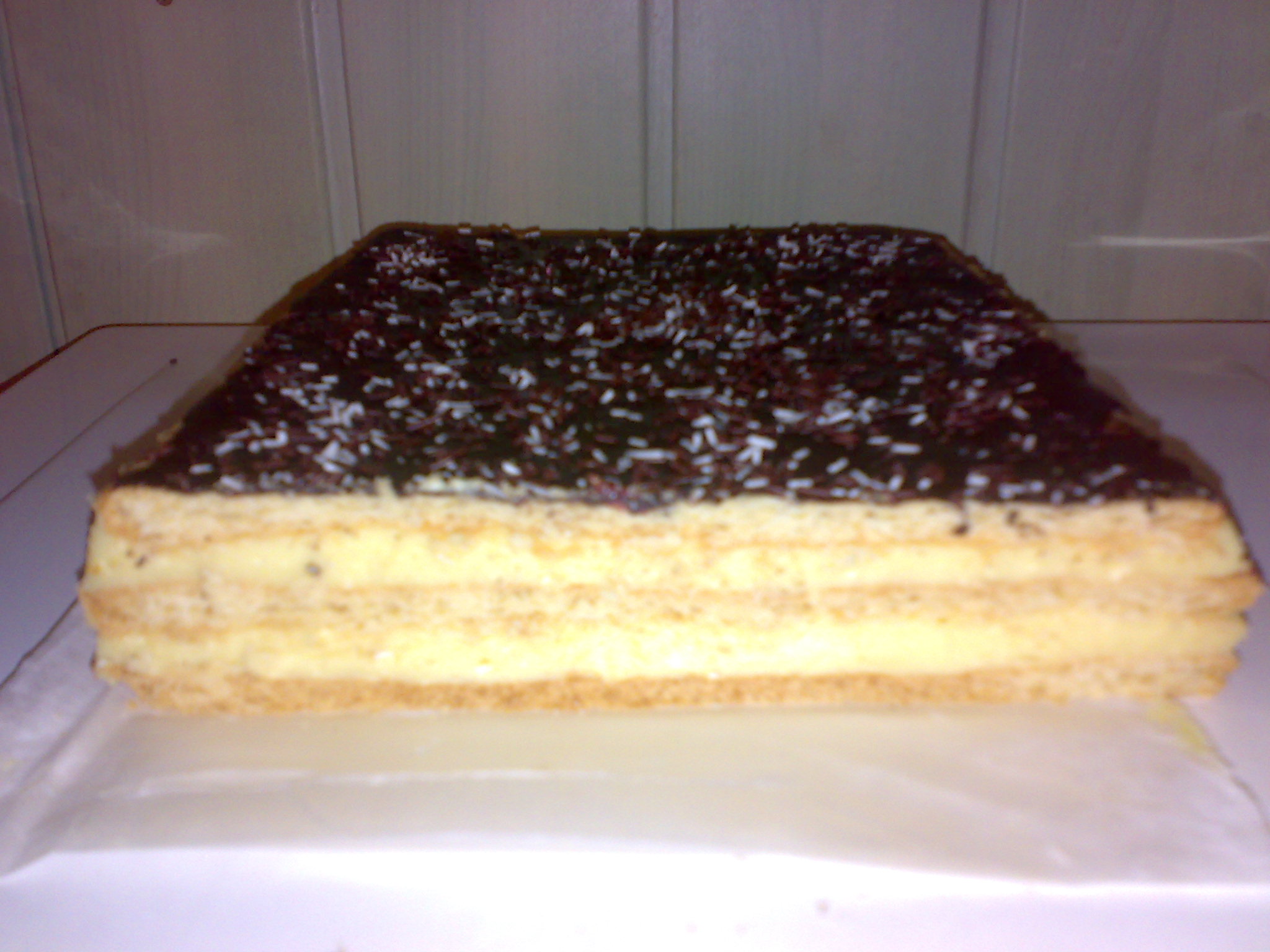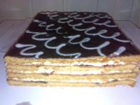 stefanka: mąka 55 dka cukier puder 25 dka jajka 3 sztuki miód 4 łyzki margaryna 20 dka----rozpuścić z miodem soda 1 łyżeczka mąke wymieszać z sodą dodać jajko ,margaryne z miodem ostudzoną, dodać do mąki i zagnieść ciasto upiec 4 placki . krem: mleko 3 szklanki kasza manna 5 łyżecz czubatych cukier puder 20 dka margaryna 12 dka masło 13 dka aromat śietankowyować powidła gotować kasze manne ok 15 min z mlekiem i cukrem. maslo z margaryna napowietrzyć dodać po łyżce kaszy manny . placki smarować cienką powidłami i kreme. polać polewą bardzo ładnie komponuje sie pokrojona na talerzu