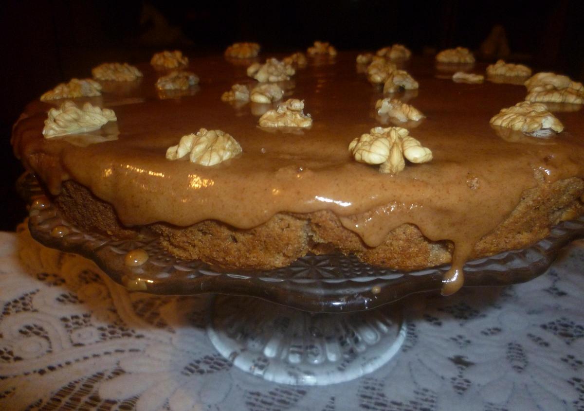 A to coś w stylu gotowany sernik, upiekłam 3 placki z miodem, kakao i przyprawą do piernika. Następnie przełożyłam je gorącą masą serową, a na górę polewa i wiórki kokosowe. Dzisiaj będę go kroić i zobaczę jak mi wyszedł ;)