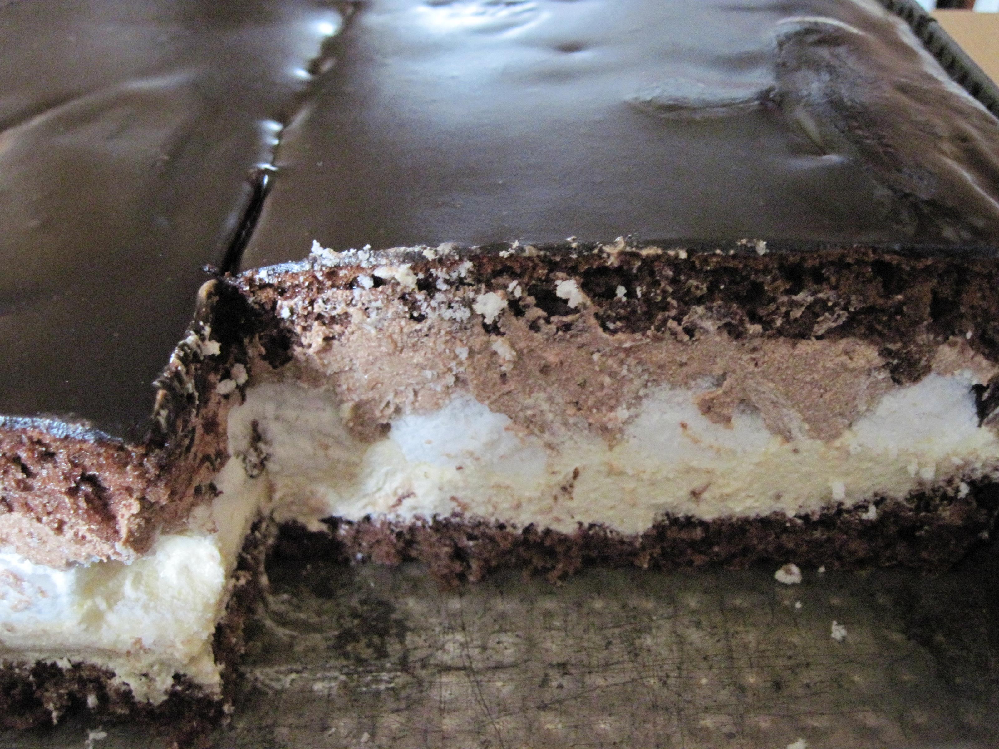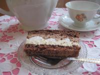 Kaliope Opublikowano 15 Maja 2010 Zgłoś Opublikowano 15 Maja 2010 Polecam wszystkim przepyszne ciacho. Kaloryczne ale naprawdę warte spróbowania :-( Biszkopt: - 8 jaj - 28 dag cukru - 16 dag mąki - 1 łyżeczka proszku do pieczenia - 2 łyżki kakao Z podanych składników upiec biszkopt kakaowy w dużej formie (u mnie 24x40 cm) i po ostudzeniu przekroić na 2 części (ja piekłam około 50 minut w temp. 200 stopni) Masa: - 2 budynie śmietankowe bez cukru - 1 szklanka cukru pudru - 2 i 1/2 szkl. mleka - 1 łyżka mąki - 2 kostki masła (lub pół na pół z margaryną) - 1 czekolada gorzka - 2 łyżki mleka - mały cukier waniliowy - 20-30 dag chałwy waniliowej - olejek rumowy - 4 łyżki spirytusu - w 1/2 szkl. mleka rozrobić budynie z łyżką mąki - pozostałe mleko zagotować - do gotującego się mleka wlać budyń i mieszać energicznie aż zgęstnieje; zestawić z ognia i wystudzić - masło utrzeć z cukrem pudrem na puch, dodawać stopniowo ostudzony budyń, olejek rumowy i ucierać do uzyskania gładkiego kremu - masę podzielić na 2 części: do jednej dodać rozkruszoną chałwę i 2 łyżki spirytusu i utrzeć mikserem; do drugiej części dodać czekoladę roztopnioną z 2 łyżkami mleka i cukrem waniliowym i na końcu 2 łyżki spirytusu (trzeba pamiętać, żeby czekoladę wystudzić, bo gdy dodamy ciepłą do masy, może się rozwarstwić) - gotowe masy włożyć na godzinę do lodówki, aby nieco stężały Dodatkowo: małe beziki dekoracyjne, około 20 dag. Wykonanie: - na jedną część biszkopta wyłożyć masę z chałwą - na to poukładać dość gęsto beziki (jeden przy drugim) - na bezy wyłożyć masę czekoladową i przykryć drugą częścią biszkopta - wierzch polać polewą czekoladową, można udekorować płatkami migdałowymi Zachęcam i życzę smacznego!!! Cytuj